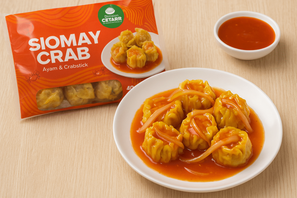 - 6–8 pcs Siomay Crab Dimsum Cetarr (langsung ambil dari freezer, tidak perlu dicairkan)